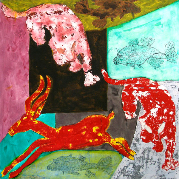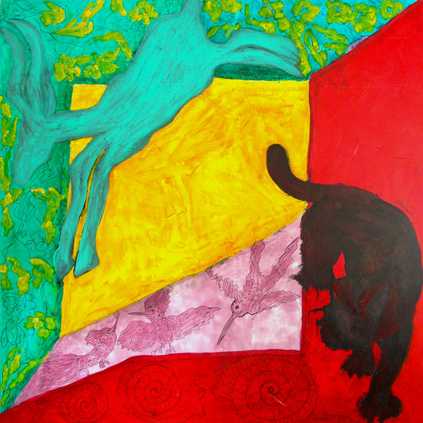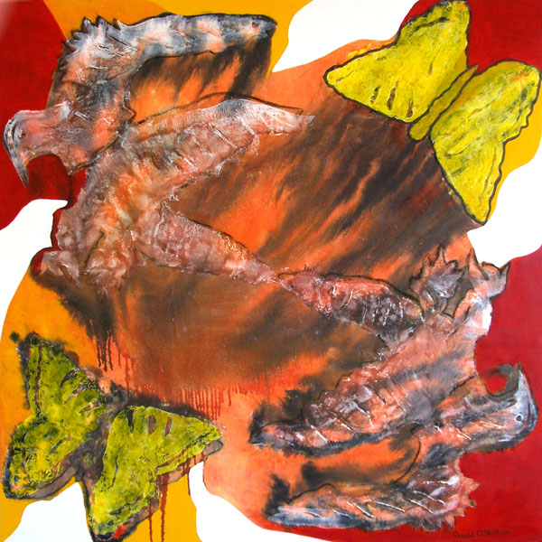 Malerei auf Papier 70 x 100 cm, Serie "Entpuppt" 2015