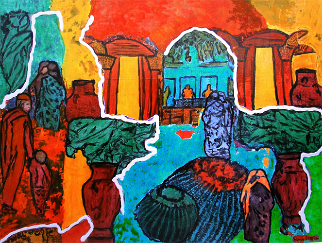 Malerei-Collage auf Leinwand, 150 x 200 cm
