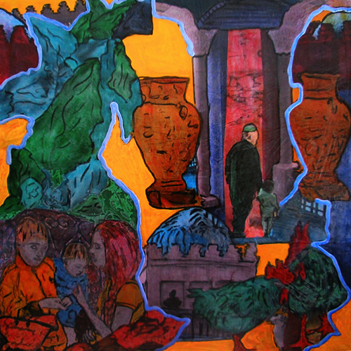 Malerei-Collage auf Leinwand, 150 x 150 cm